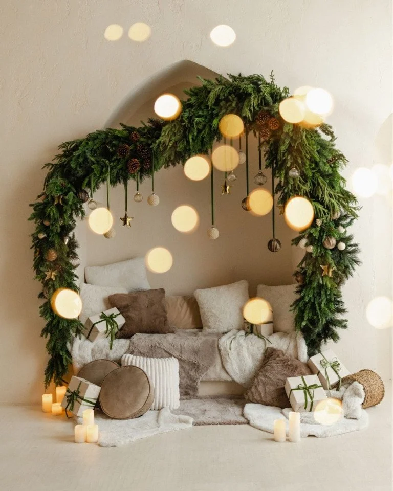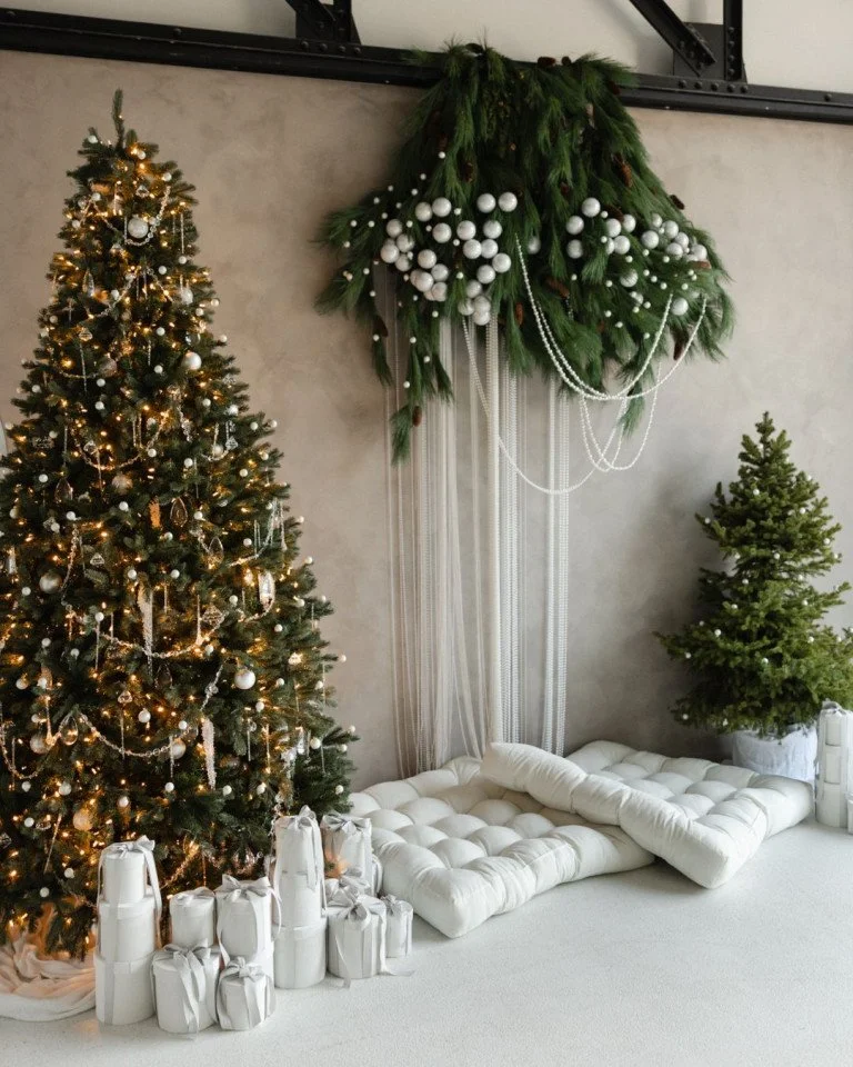 Choose from 3 stunning holiday setups — from classic cozy living rooms to whimsical modern backdrops.
